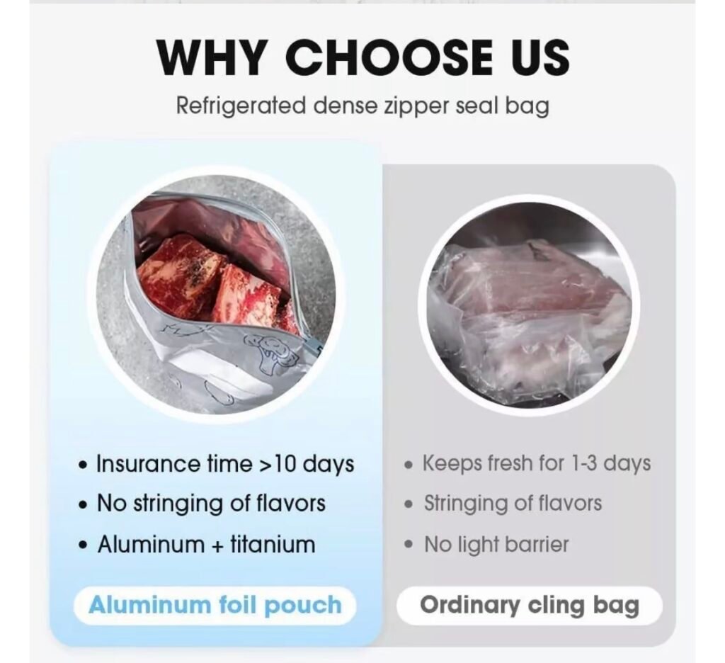 ❌ Plastik terbiar terbuka✅ Zip terus – angin tak masuk