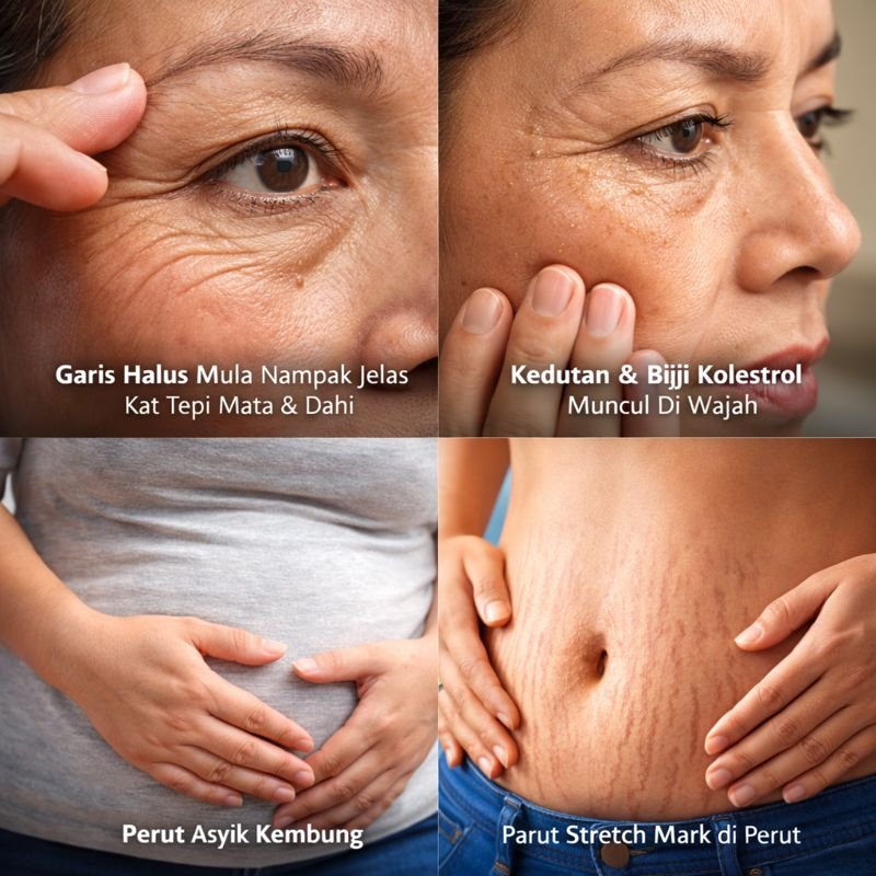Masalah Perut Kembung & Strecth Mark, Muka Berkedut dan Tumbuh Biji Kolestrol.