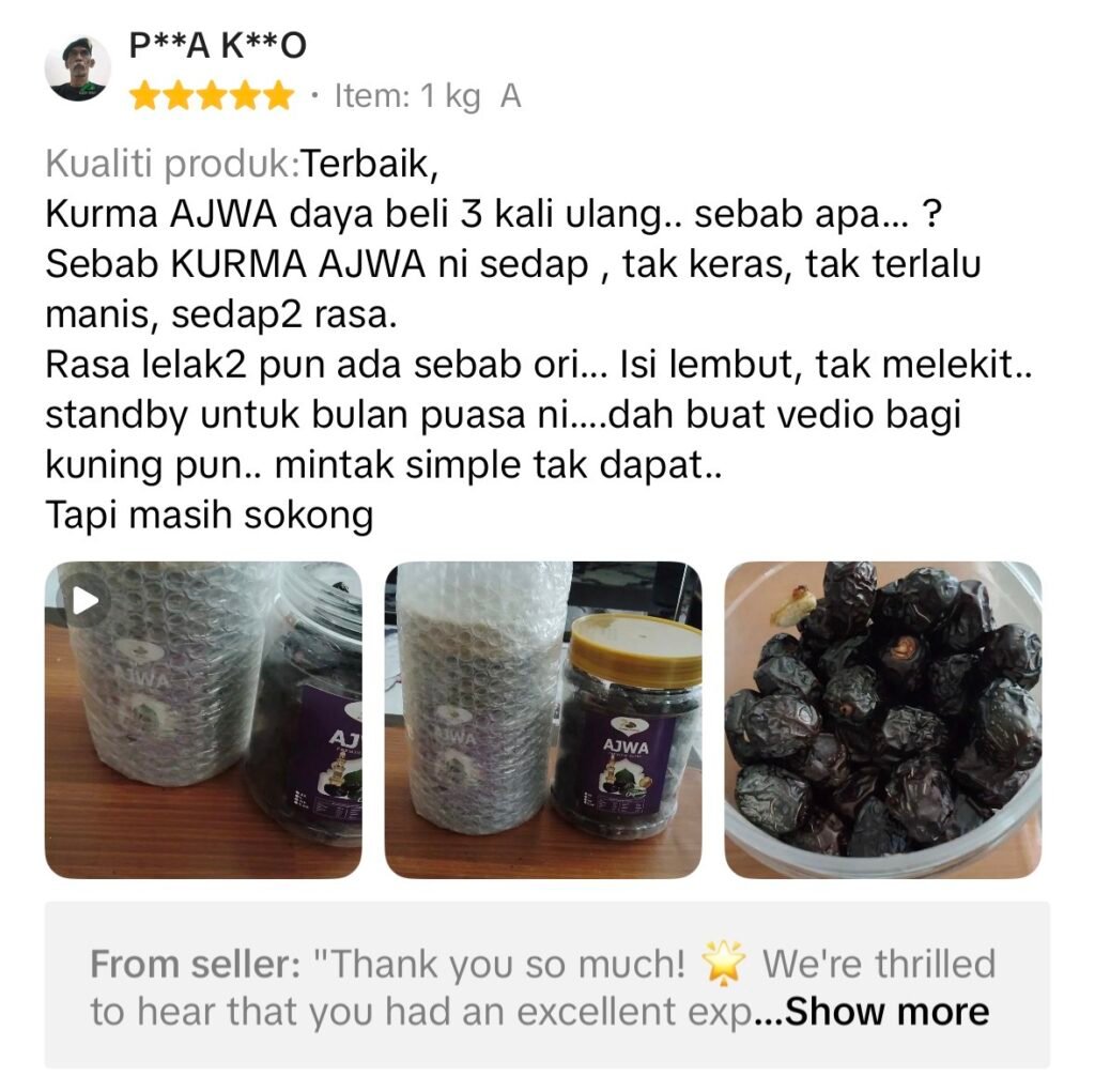 Mulakan dengan amalan kecil yang konsisten β€” Kurma Ajwa Grade A.