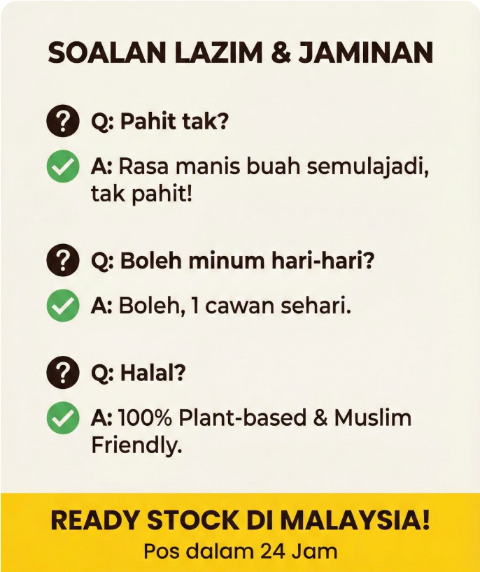😮💨 “Badan cepat penat… minda pun makin ‘slow’, tapi nak bergantung pada kopi setiap hari pun rasa tak sedap hati.” Tolong Jangan Skip Page Ni !!! ❗ Masalah bila dah berumur ni.. Umur naik, tanggungjawab pun naik. Kita bukan nak “power luar biasa”… kita cuma nak badan stabil dan rasa sihat dari dalam. 🚨 Ramai orang tak sedar… badan yang letih selalunya perlukan “sokongan dalaman”, bukan sekadar kafein Sebab tu ramai mula cari pilihan yang lebih “gentle” — macam teh herba. INI ADALAH CARA TURUN TEMURUN mengunakan pelbagai jenis bahan semula jadi untuk menjaga kesihatan secara berterusan. Tapi Jangan Risau... Kami Ada Solusi Paling Berkesan! Ten Treasures Ginseng Tea Sudah Terjual 0 Memperkenalkan : Ten Treasures Ginseng Tea 10 Ramuan Dalam 1 Teh : 100% bahan semula jadi ❌ tiada gula tambahan 🫖 💯 “Perkadaran optimum” + campuran herba & buah = rasa lebih seimbang, tak ‘tajam’. ❪ Apa kajian yang teh ini dapat membantu dari sudut “support badan” ❫ Cara Bisa VS Ten Treasure Ginseng Tea Cara Biasa (Kopi)Ten Treasure Ginseng Tea❌ Kopi manis → tenaga sekejap✅ Teh herba tiada gula tambahan❌ Nak rebus herba = renyah✅ 1 uncang, rendam terus❌ Minuman kosong nutrien✅ Minuman kosong nutrien❌ Kesan jangka pendek✅ Kesan lebih kekal bila guna konsisten Apa Kata Pengguna Sebenar? 🎁 PROMO KHAS UNTUK YANG NAK DAPATKAN TEN TREASURE GINSENG TEA (30pcs) Promosi Khas Hari Ini PROMO TAMAT DALAM MASA TAK PERLU RISAU BARANG TAK SAMPAI. BAYAR JE DEKAT POSMEN Kadang kita tak perlukan perubahan besar pun. Cukup satu rutin kecil yang konsisten — untuk bantu badan rasa lebih stabil. Bertindak Sekarang!! Nak Order? Sila Isi Borang Tempahan di Bawah Ten Ginseng Tea MYPakej Pakej Trial - RM59 (1 pack) Ten Ginseng Tea Pakej Combo - RM79 (2 pack) Ten Ginseng Tea Pakej Jimat - RM89 (3 pack) Ten Ginseng TeaNAMA PENUHALAMATPOSKODNO TELEFONNOTAPOSTAGE COD (RM10)Tempah Sekarang