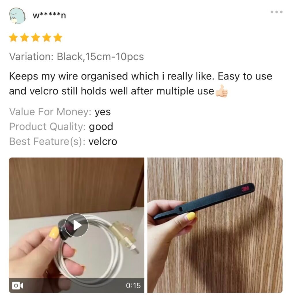 Tali hook & loop boleh guna semula untuk susun kabel rumah/pejabat, wayar cas, aksesori PC & AV. Tahan lama, fleksibel, mudah laras, tanpa kesan gam