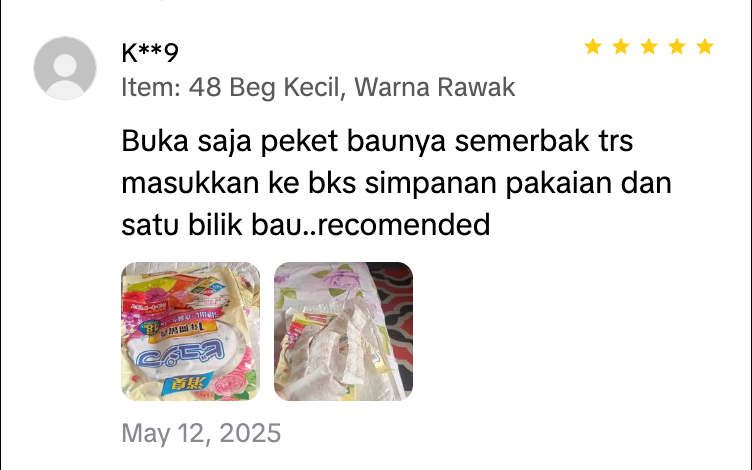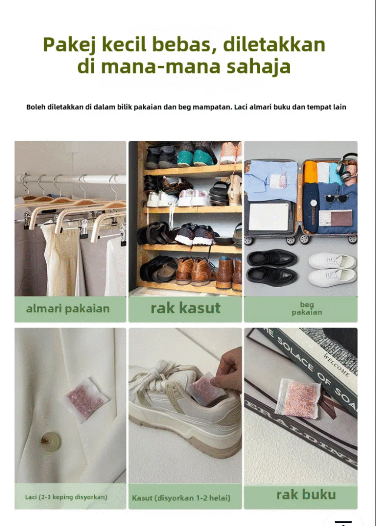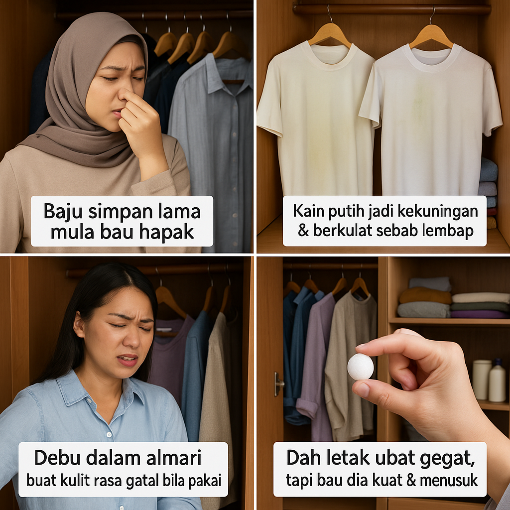 Baju kekal harum, almari tak lagi sunyi & berbau. Lebih selesa, lebih bersih, lebih tenang.