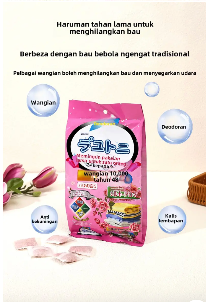 “Baju kekal wangi, almari kekal bersih – tanpa ubat gegat yang menyengat.” 🧺🌸
